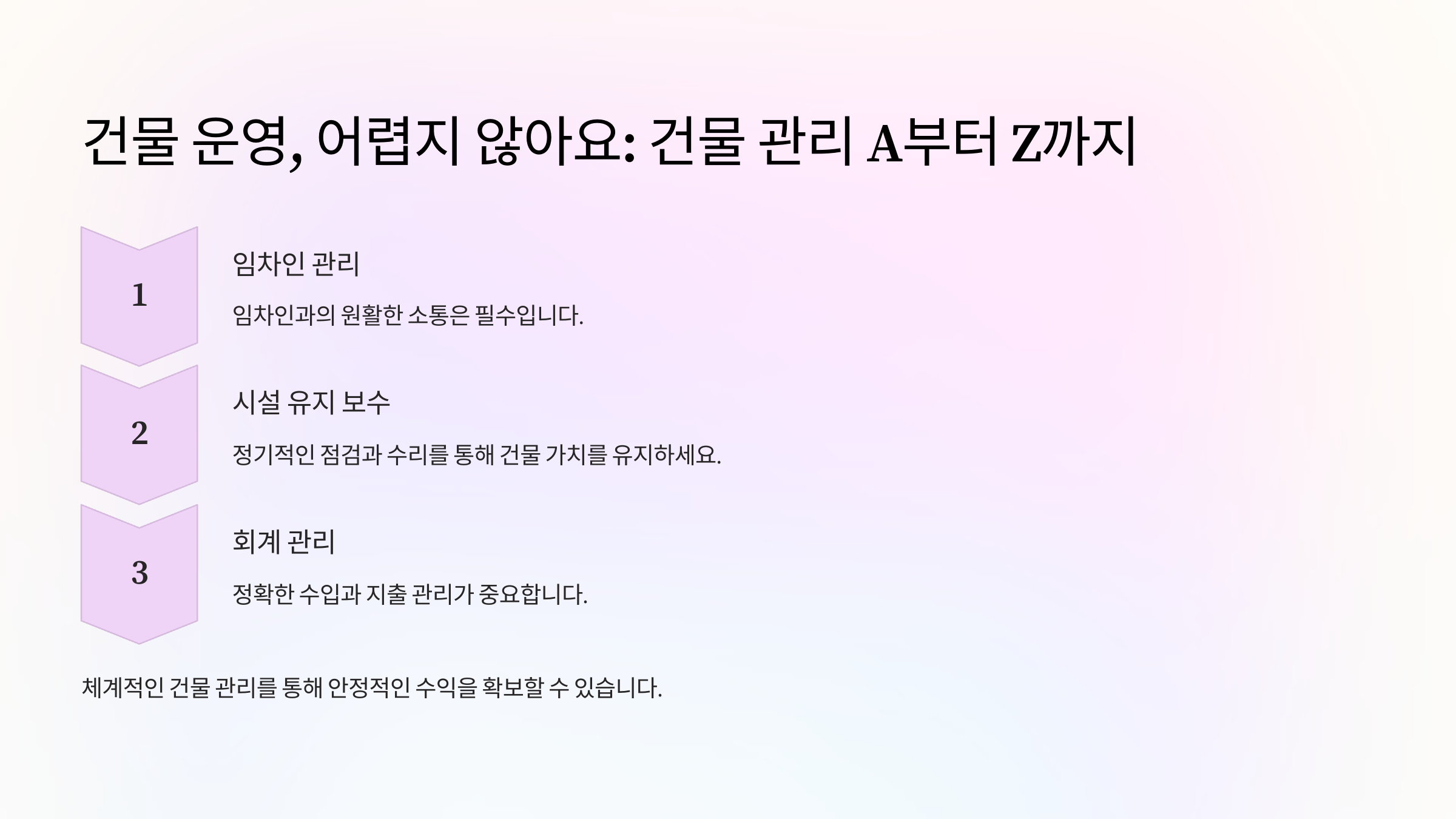 꼬마빌딩을 매입한 후에는 건물을 효과적으로 운영하고 관리하는 것이 중요해요. 아무리 좋은 입지의 건물이라도 관리가 제대로 되지 않으면 임차인이 빠져나가고, 공실이 늘어나면서 수익성이 떨어질 수 있답니다.