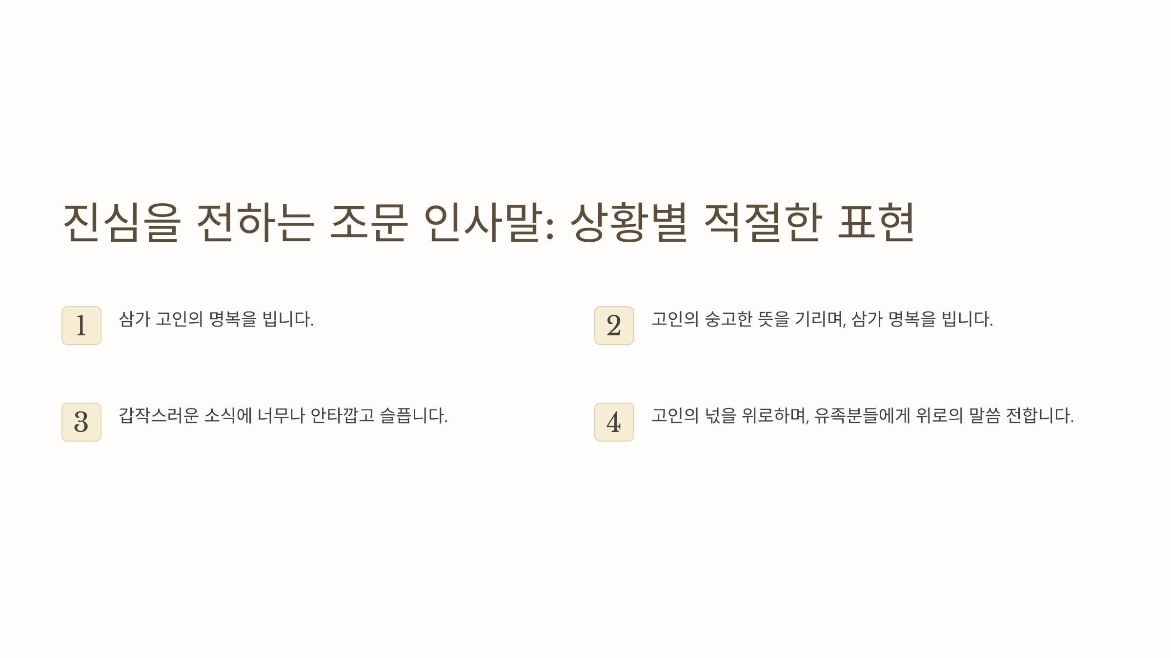 위로의 말은 길 필요 없어요. 짧고 진심 어린 한마디가 유족에게 더 위로가 될 수 있어요. 🙏